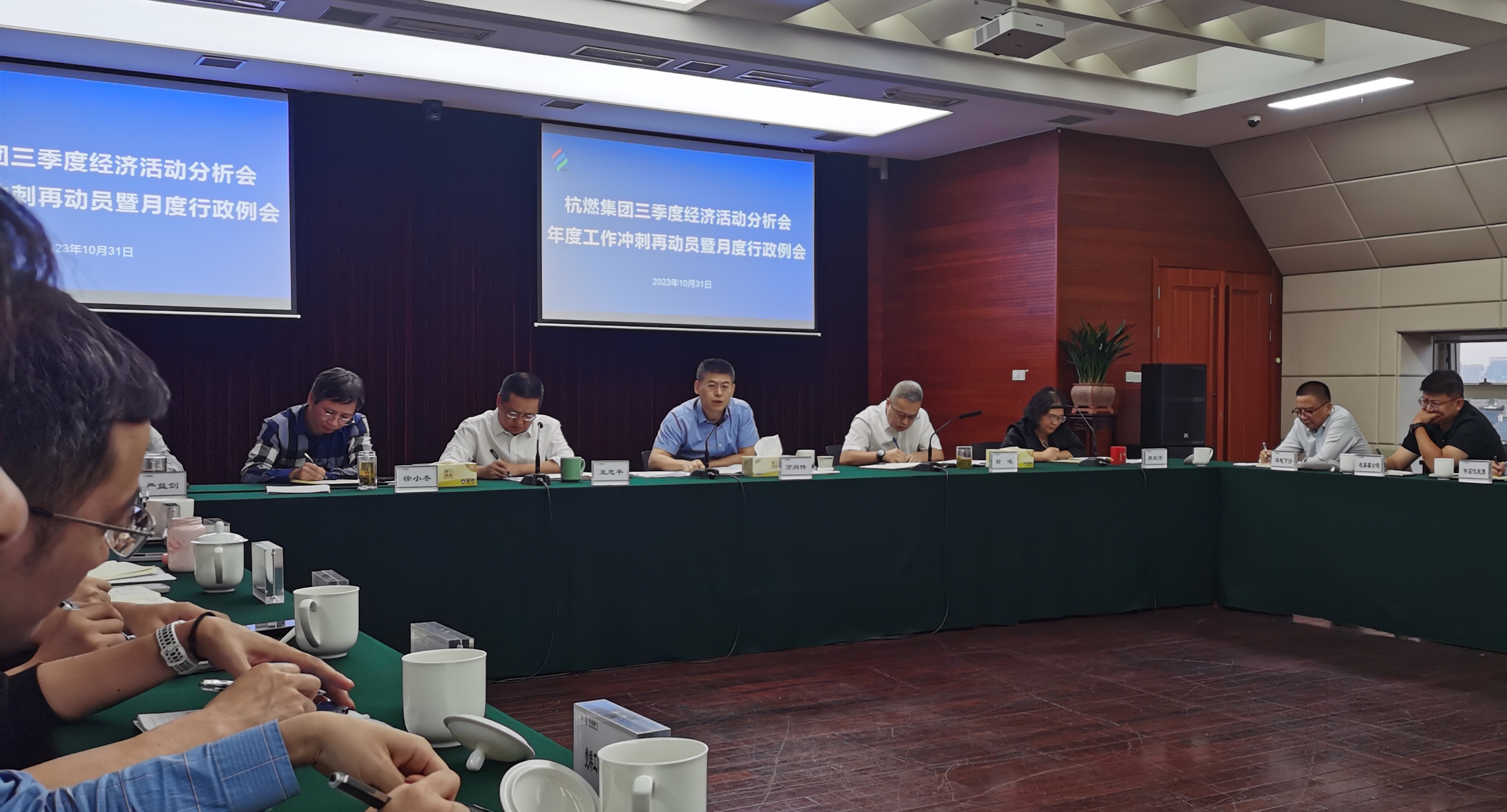 2023年10月31日下午,杭燃集團(tuán)召開三季度經(jīng)濟(jì)活動分析會、年度工作沖刺再動員暨月度行政例會。集團(tuán)領(lǐng)導(dǎo)班子,各部室負(fù)責(zé)人,杭天公司經(jīng)營班子、杭天各部室主要負(fù)責(zé)人、分公司黨政負(fù)責(zé)人,全資及控股企業(yè)、參股企業(yè)主要負(fù)責(zé)人近60人參加會議。會議由集團(tuán)黨委委員、副總經(jīng)理王忠平主持。