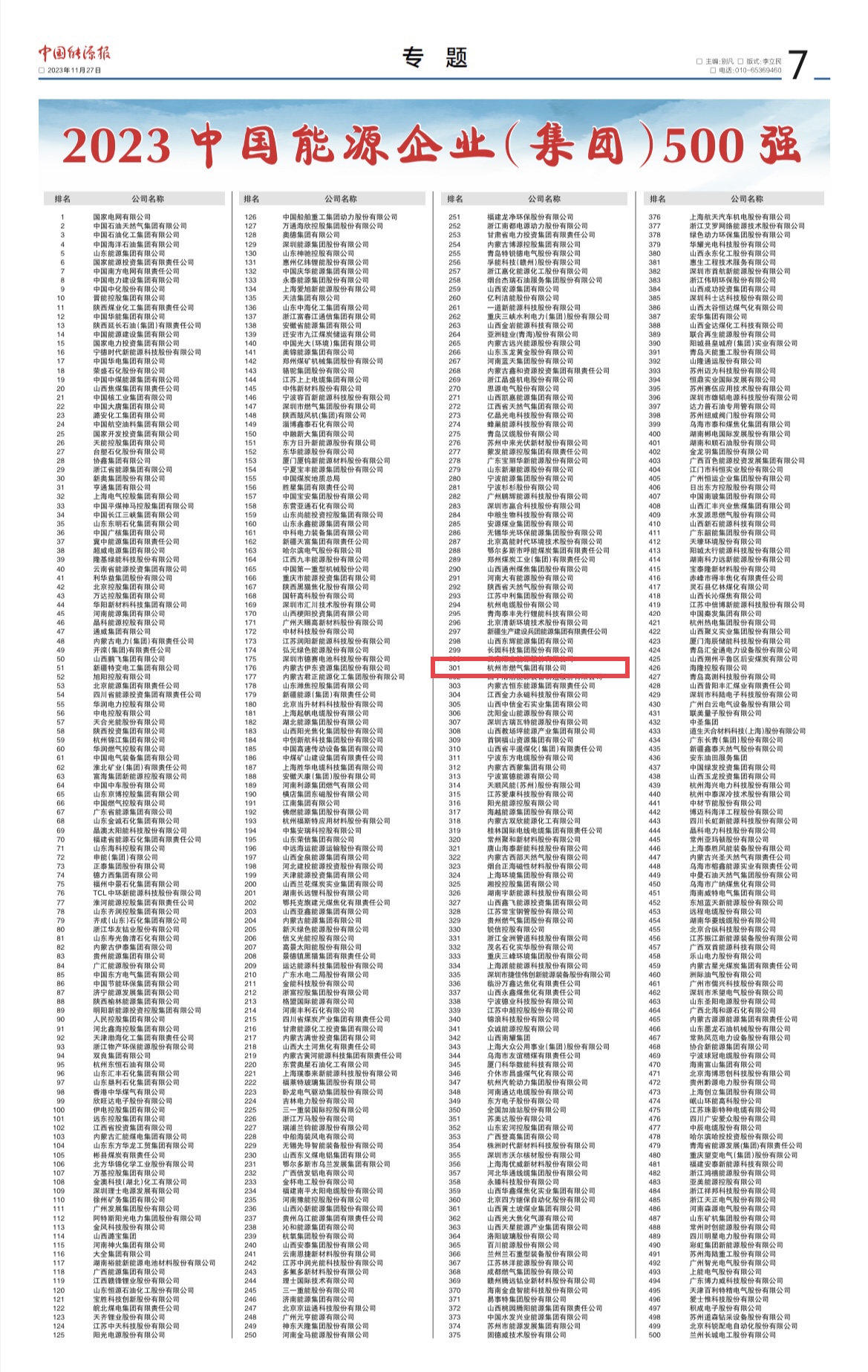 近日,由中國能源報社與中國能源經(jīng)濟(jì)研究院共同評選的2023中國能源(集團(tuán))500強(qiáng)榜單重磅揭曉,杭燃集團(tuán)再次入榜,排名第301位,較上年排名大幅攀升36位!