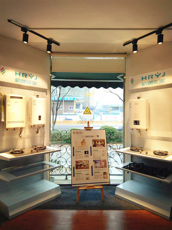 設(shè)置展臺,宣傳“優(yōu)家”品牌。9月20日,“杭燃優(yōu)家”正式對外銷售。公司立即響應(yīng)集團公司號召,對江虹路營業(yè)廳這只“小麻雀”,又進行了一番改造。去除大廳左側(cè)整體玻璃,將結(jié)構(gòu)稍作變更,鋪地毯、立墻面、擺展臺,掛射燈……“杭燃優(yōu)家”熱水器、灶具、鍋爐等產(chǎn)品以溫暖的“形象”紛紛展現(xiàn)在客戶眼前。展臺室外的鐵質(zhì)欄桿更是具有藝術(shù)氣息,外立面的白色木質(zhì)墻面與優(yōu)家的宣傳圖貼切融合。展位雖小,卻獨具一格。
