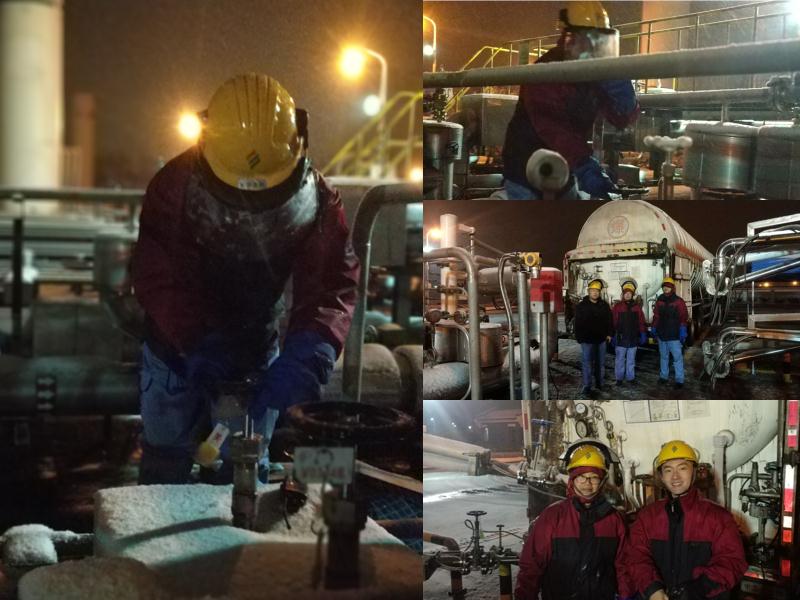 連續(xù)六天的裝車作業(yè)都是在深夜進行,極寒天氣下,深夜的杭城還飄著雨雪,氣溫已至零下,加上LNG裝車低溫作業(yè),無疑是雪上加霜,高壓儲配分公司值班干部、運行、維修人員無懼刺骨的寒風冰雪,挑燈夜戰(zhàn),奮戰(zhàn)在崗位一線,為防寒抗凍、安全用氣貢獻自己的力量。同時集團公司、杭天領(lǐng)導(dǎo)心系現(xiàn)場和一線員工,1月26日、27日、29日連續(xù)三個晚上到東部站進行安全檢查并慰問裝車作業(yè)人員,給堅守一線、寸步不離的干部員工帶來了溫暖。