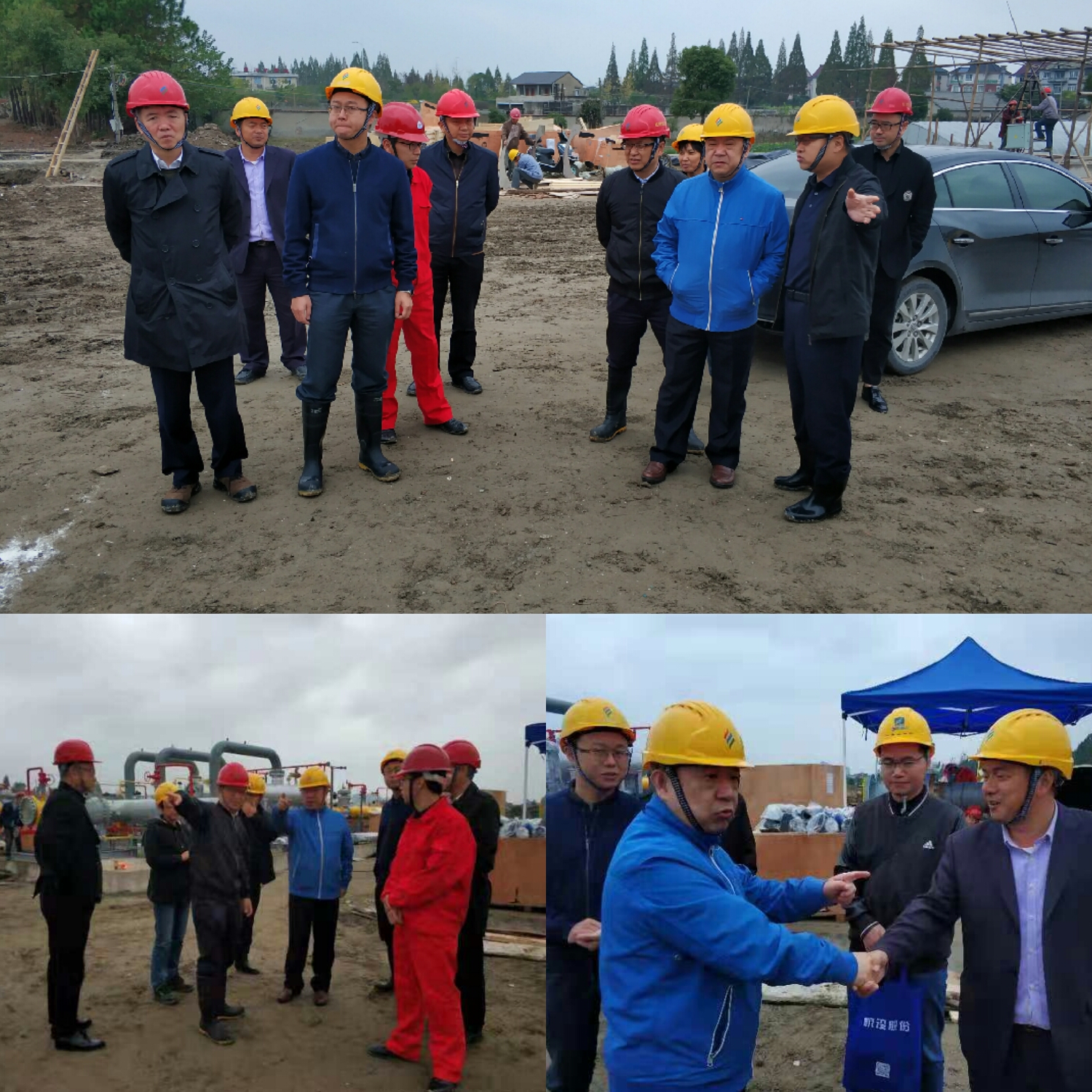 2018年11月16日上午,杭州市燃?xì)饧瘓F(tuán)黨委書記、董事長蘆俊,副總經(jīng)理王忠平、總經(jīng)理助理俞峻,杭天公司總經(jīng)理沈劍平等一行對(duì)S11江北閥室工程項(xiàng)目施工進(jìn)行現(xiàn)場踏勘指導(dǎo)。