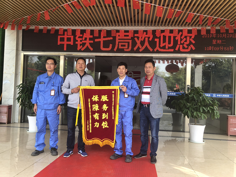 10月29日下午,中鐵七局為感謝杭天公司鼎力支持、全力配合杭千引水工程建設,特送上寫有“保障有力、服務到位”的錦旗。