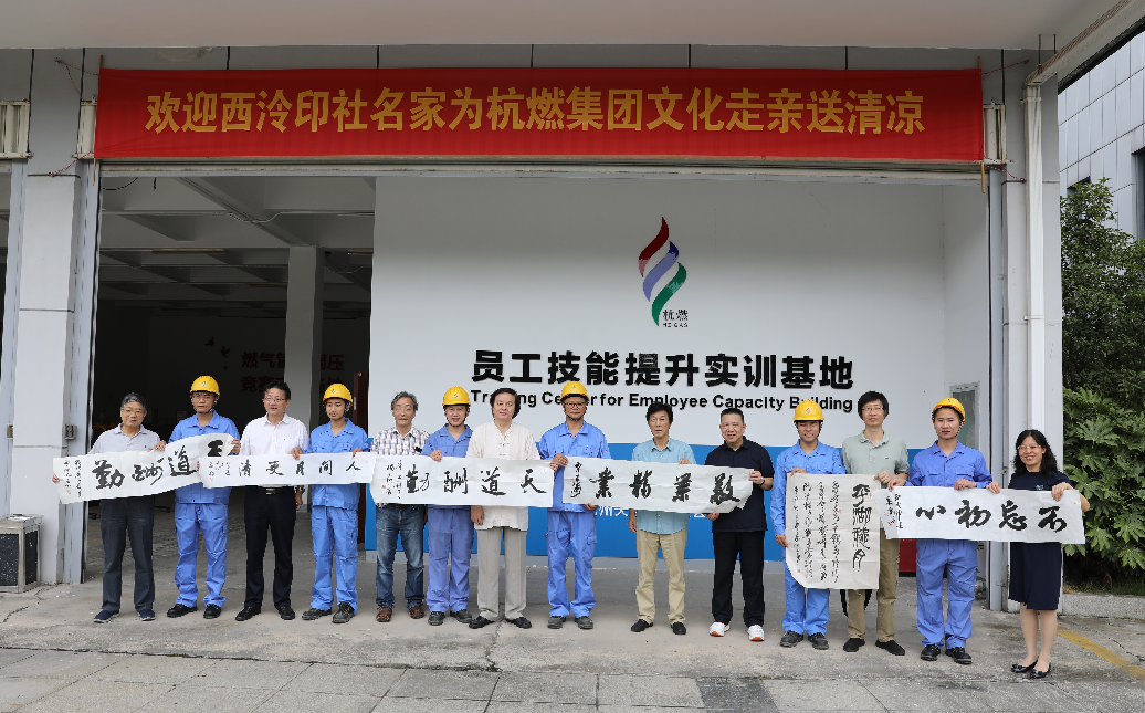 9月2日上午,宋濤、楊西湖、沈金加、吳新如、夏一鵬、郭超英西泠印社書(shū)法家一行6人走進(jìn)七堡基地“沈衛(wèi)國(guó)技能大師工作室”開(kāi)展“杭燃文化走親送清涼”活動(dòng)。集團(tuán)領(lǐng)導(dǎo)蘆俊、朱琴君,集團(tuán)辦公室、杭天公司相關(guān)負(fù)責(zé)人、一線(xiàn)優(yōu)秀員工代表沈衛(wèi)國(guó)、鐘奇、丁榮榮、賴(lài)濤、范列朋、陳全良參加。