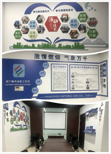 該技能工作室建立在朝暉營業(yè)廳內(nèi),以杭州市“最美辦事員”阮佳的名字命名,從整體布局到內(nèi)飾設(shè)計(jì)再到成品展示皆由天目綠色能源綜合服務(wù)站員工章怡和綜合管理部員工施燕云完成,工作室的成立便是服務(wù)發(fā)展公司員工發(fā)揮特長、展現(xiàn)藝術(shù)技能的一個(gè)縮影。工作室設(shè)有教學(xué)投屏、培訓(xùn)計(jì)劃、學(xué)習(xí)園地與活動風(fēng)采、榮譽(yù)墻展示等,是集窗口服務(wù)、熱線服務(wù)為一體的綜合性客戶服務(wù)理論與實(shí)操平臺。