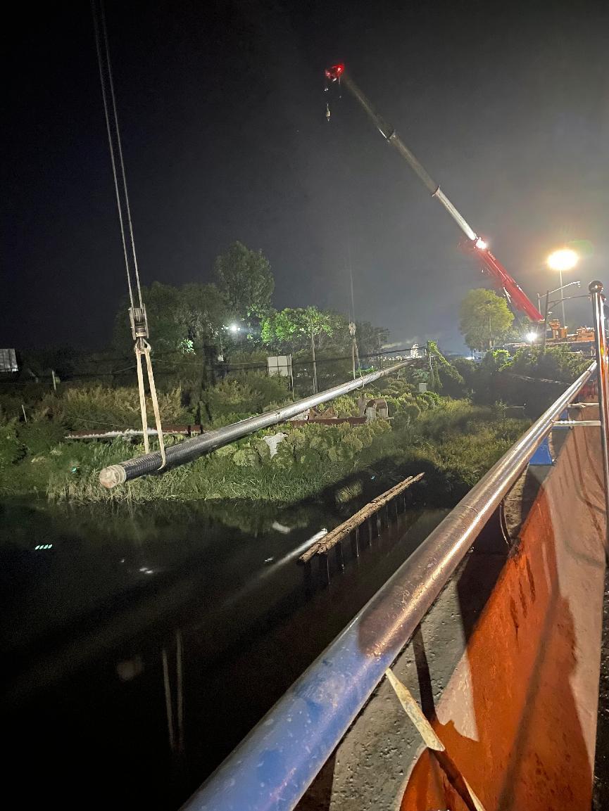 9月18日23時22分,歷經(jīng)28小時,杭州市天然氣利用工程大江東高壓環(huán)網(wǎng)三期紅十五線主干管(DF3閥室—臨江南調(diào)壓站以東)項(xiàng)目14#定向鉆(穿越外圍中心河段)回拖成功。其穿越長度1585.9米,為S19紅十五線高壓工程中最長的一條定向鉆,至此,該工程的主體建設(shè)施工宣告完成。