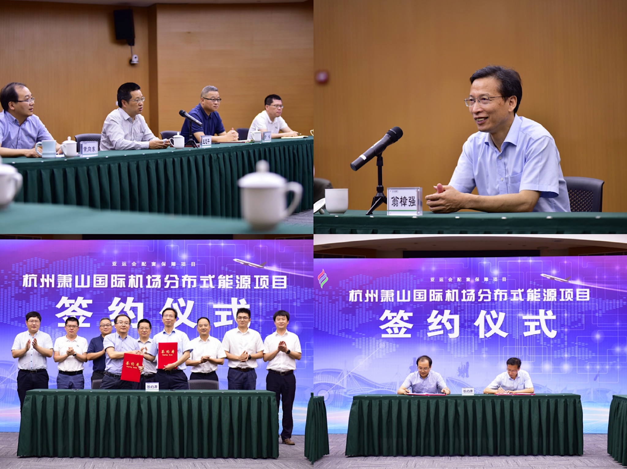 2020年6月5日上午,杭州蕭山國際機場有限公司、杭州城市能源有限公司在小和山綠色能源體驗中心舉行杭州蕭山國際機場分布式能源項目簽約儀式。杭州蕭山國際機場三期建設指揮部副書記、副總指揮翁樟強,杭州市燃氣集團有限公司黨委委員、副總經(jīng)理王忠平、俞峻,杭州蕭山國際機場三期建設指揮部工程二部、設計技術(shù)部負責人,杭州城市能源公司領導班子參加了簽約儀式。