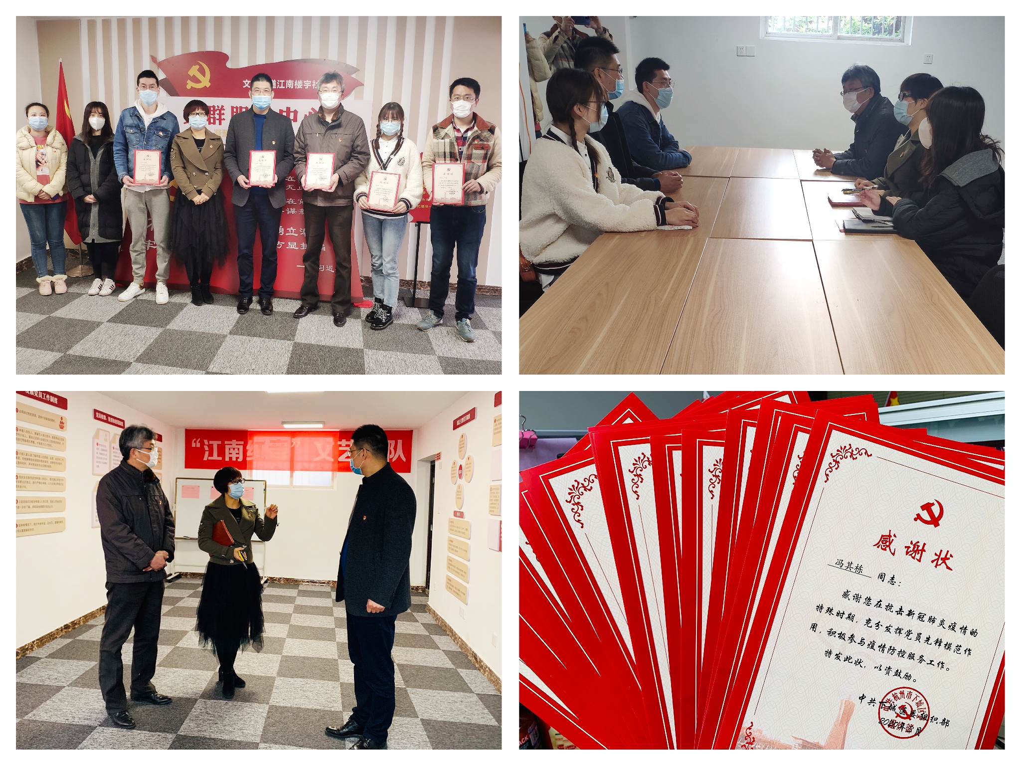 在文暉街道江南樓宇社區(qū)黨委書記田紅衛(wèi)的帶領下,首先參觀了江南樓宇社區(qū)黨群服務中心,并圍繞黨建共建創(chuàng)新思路進行了深入交流。活動中,田書記還對公司助力社區(qū)抗疫、協(xié)助企業(yè)復工工作給予了高度肯定,并代表下城區(qū)委組織部為鐵軍防疫志愿者代表頒發(fā)了《感謝狀》。田書記表示:“抗疫期間真切的感受到了杭燃作為公用企業(yè)的責任與擔當,真正做到政企同心,親如一家,志愿者們也是隨叫隨到,無論是社區(qū)卡口還是樓宇復工,哪里都有鐵軍志愿者的身影,深受感動,深表感謝!”