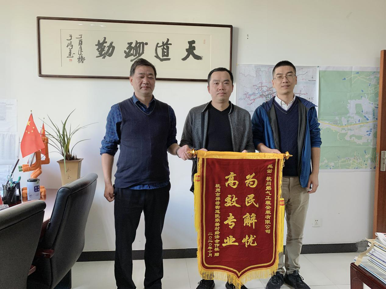 11月5日下午,杭州市拱墅區(qū)祥符街道阮家橋社區(qū)主任張國中帶著錦旗“為民解憂,高效專業(yè)”專程趕來,對工程公司項(xiàng)目二部的施工服務(wù)表示感謝,副總經(jīng)理朱國軍代表公司感謝阮家橋社區(qū)對我們工作的支持和肯定。