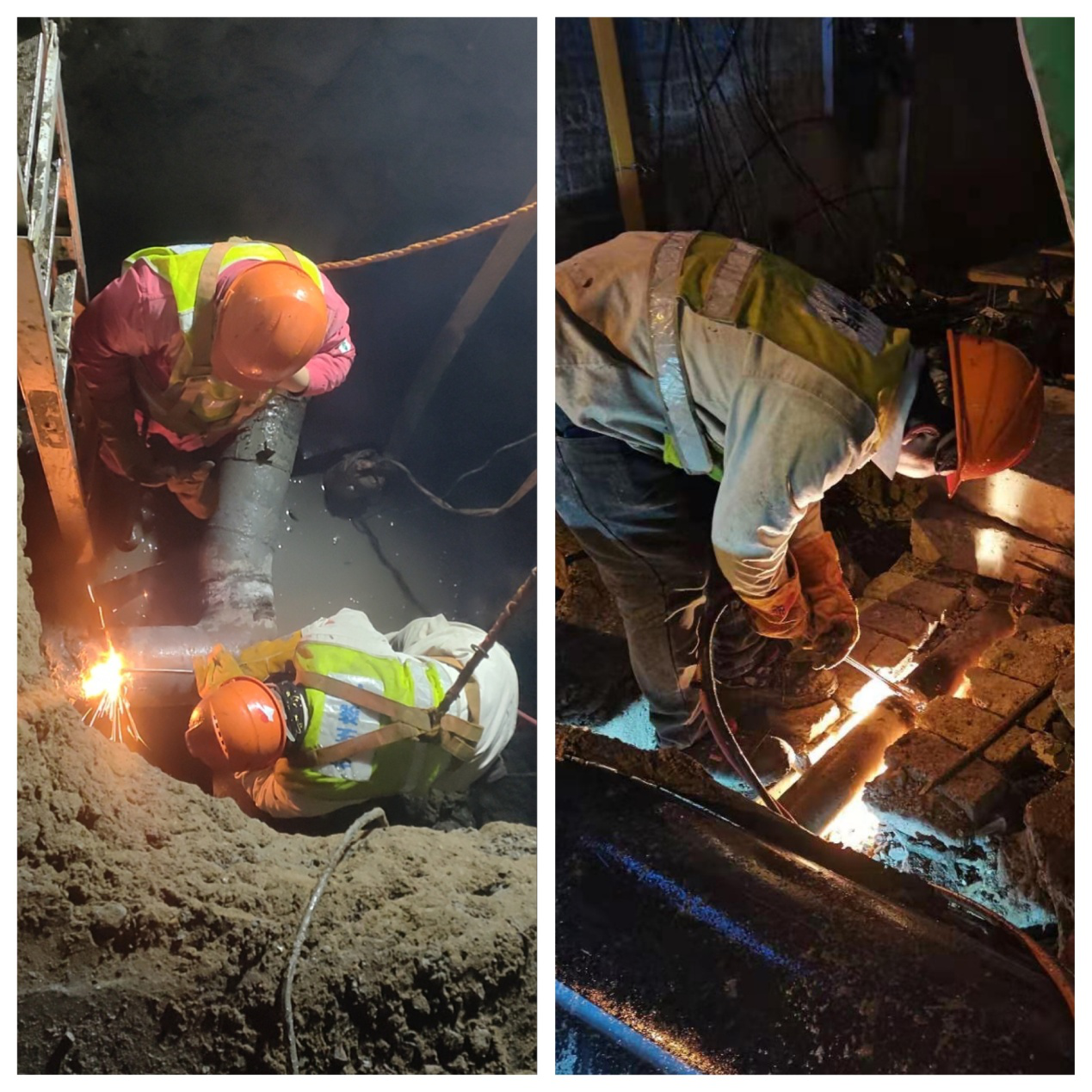 13日晚7時許,公司工程管理部副經(jīng)理范建強(qiáng)帶領(lǐng)大家開始整理滅火器、防爆燈、防爆風(fēng)機(jī)、呼吸機(jī)等設(shè)備、物資!暗蜏、雨雪,是這場寒潮給施工的一個考驗(yàn)。身在生產(chǎn)一線,安全責(zé)任重大,除了馬不停蹄地工作,還要做好‘七個一’安全文明施工措施,一點(diǎn)馬虎不得!闭f完,他便督促施工班組落實(shí)安全技術(shù)交底,確保安全、技術(shù)可控。夜越來越深,氣溫直逼0℃,雨水也不斷拍打在施工人員身上,但惡劣的天氣絲毫沒有打亂大家工作的節(jié)奏,在杭天公司的協(xié)調(diào)指揮下,經(jīng)過五個多小時奮戰(zhàn),于12月14日凌晨1:46分圓滿完成地鐵5號線再行路站中壓永久管割接置換。