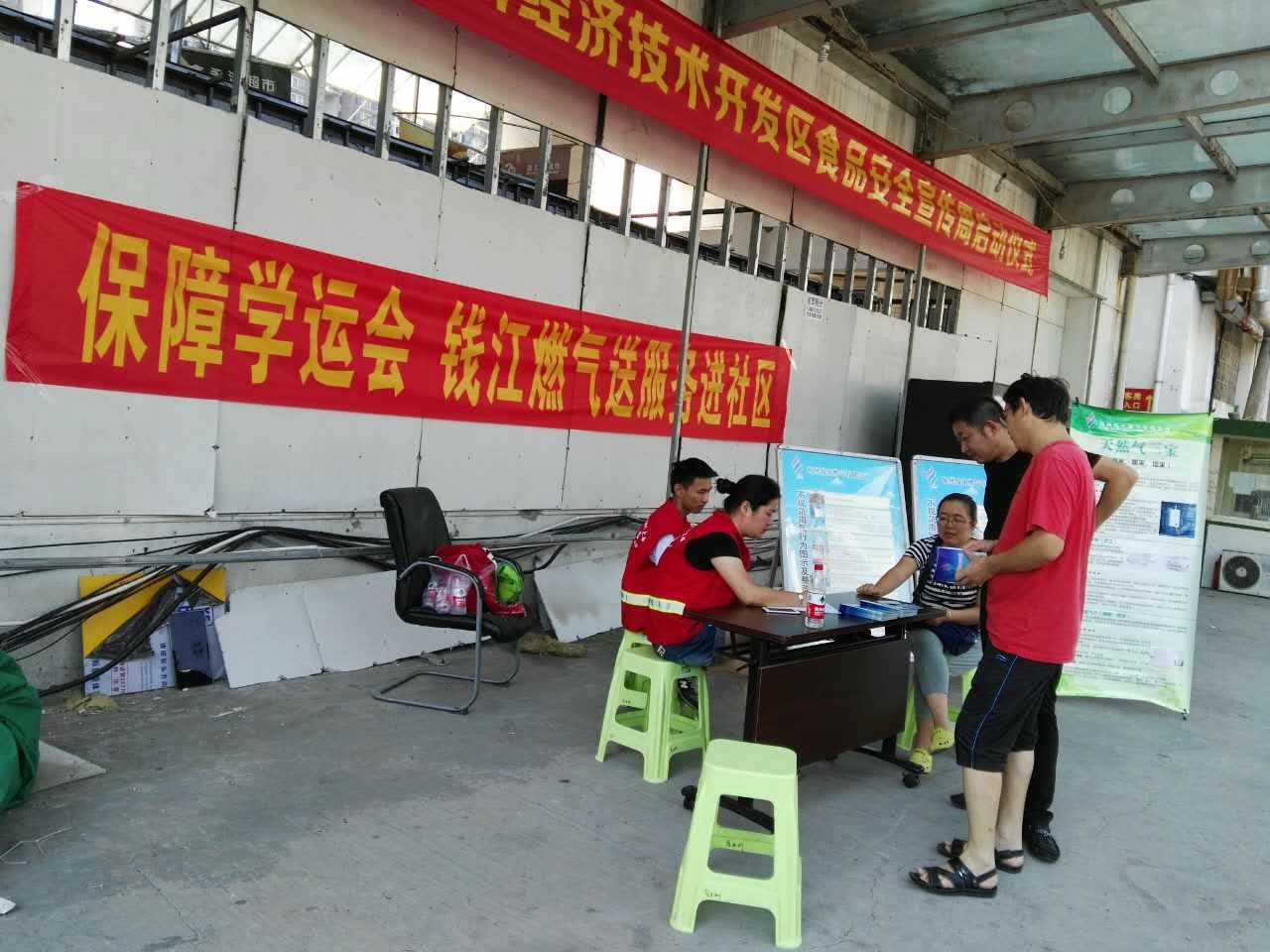 8月19日,錢江公司組織黨團(tuán)員志愿者在下沙云水苑小區(qū)開展“保障學(xué)運(yùn)會,錢江燃?xì)夥⻊?wù)進(jìn)社區(qū)”現(xiàn)場服務(wù)活動。此次活動的服務(wù)內(nèi)容有針對居民用戶提供燃?xì)鈸Q管預(yù)約、免費(fèi)上門安檢、安全用氣宣傳和“三寶”業(yè)務(wù)推廣咨詢等一系列便民服務(wù);顒蝇F(xiàn)場共發(fā)放《安全手冊》23本,上門安檢7戶,預(yù)約換管6戶,業(yè)務(wù)咨詢22戶。