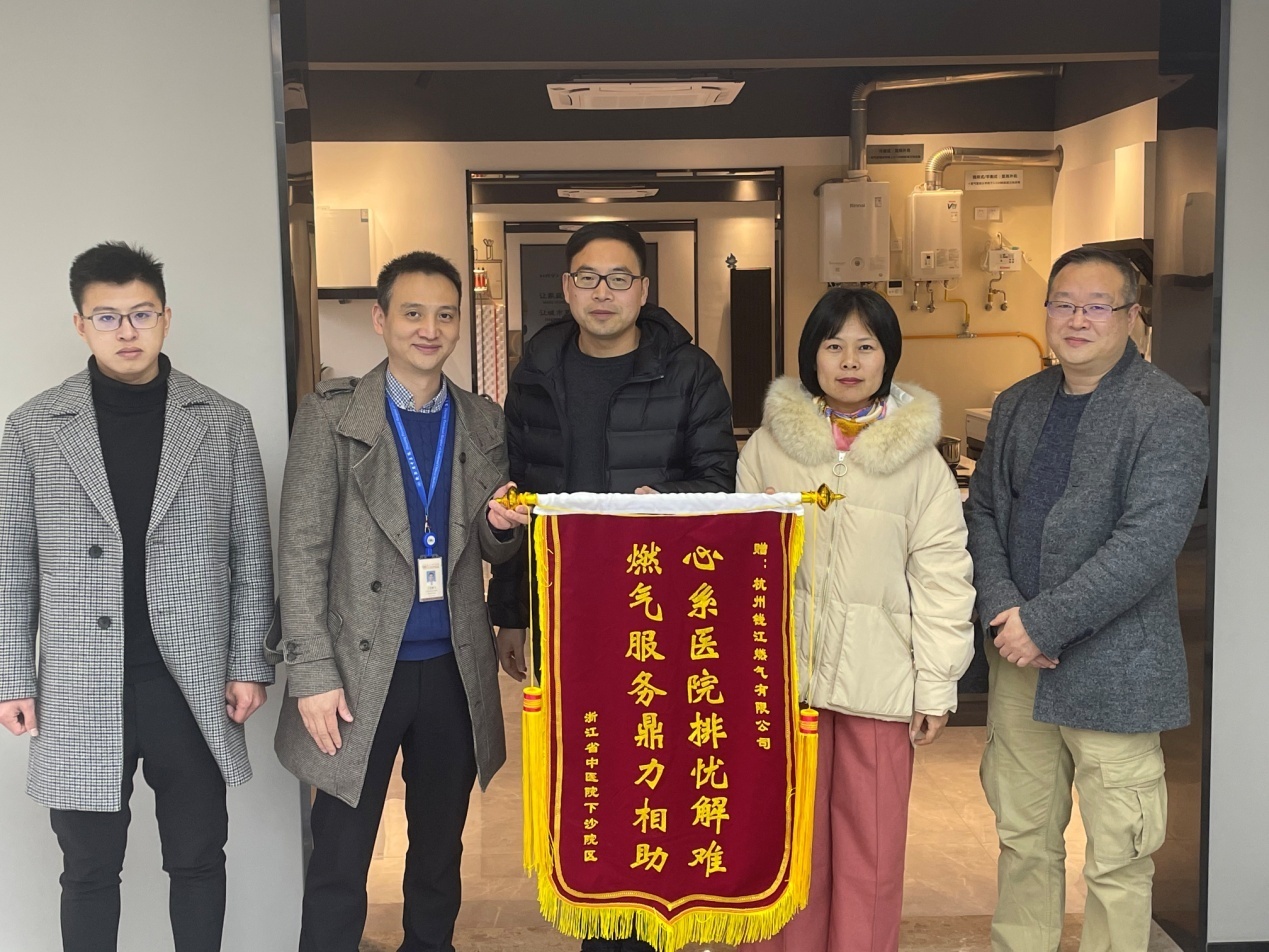 2021年1月25日下午,浙江省中醫(yī)院將一面寫著“心系醫(yī)院排憂解難,燃?xì)夥⻊?wù)鼎力相助”的錦旗送到了錢江公司,衷心感謝錢江公司為支持醫(yī)療事業(yè)及保障疫情防控做出的貢獻。