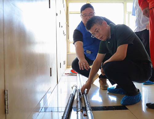 萬董察看了正處于立管施工階段的二樓住戶和已完成立管更換的十樓住戶家中情況,詢問了材質(zhì)特性、耐久性能及施工規(guī)范等關(guān)鍵技術(shù)指標(biāo),并就施工方案的具體落實(shí)和居民反饋意見與現(xiàn)場人員進(jìn)行交流。