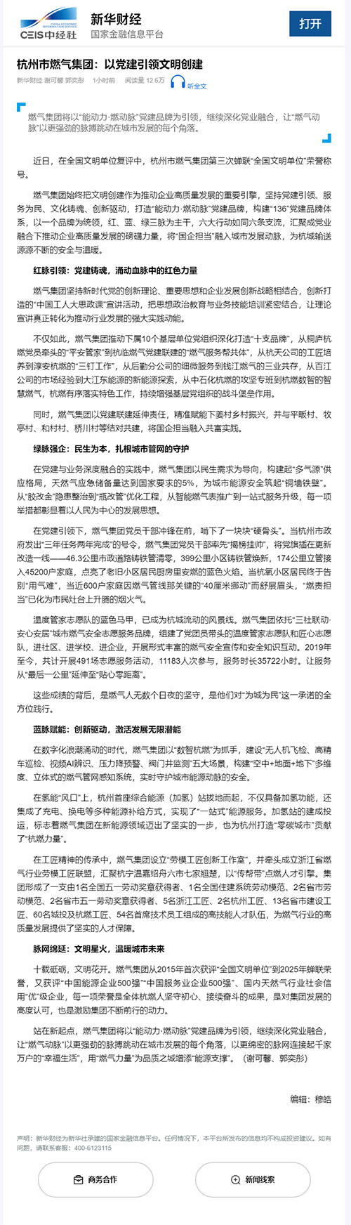 十載砥礪,文明花開。燃?xì)饧瘓F(tuán)從2015年首次獲評(píng)“全國文明單位”到2025年蟬聯(lián)榮譽(yù),又獲評(píng)“中國能源企業(yè)500強(qiáng)”“中國服務(wù)業(yè)企業(yè)500強(qiáng)”、國內(nèi)天然氣行業(yè)社會(huì)信用“優(yōu)”級(jí)企業(yè),每一項(xiàng)榮譽(yù)是全體杭燃人堅(jiān)守初心、接續(xù)奮斗的成果,是對(duì)集團(tuán)發(fā)展的高度認(rèn)可,也是激勵(lì)集團(tuán)不斷前行的動(dòng)力。