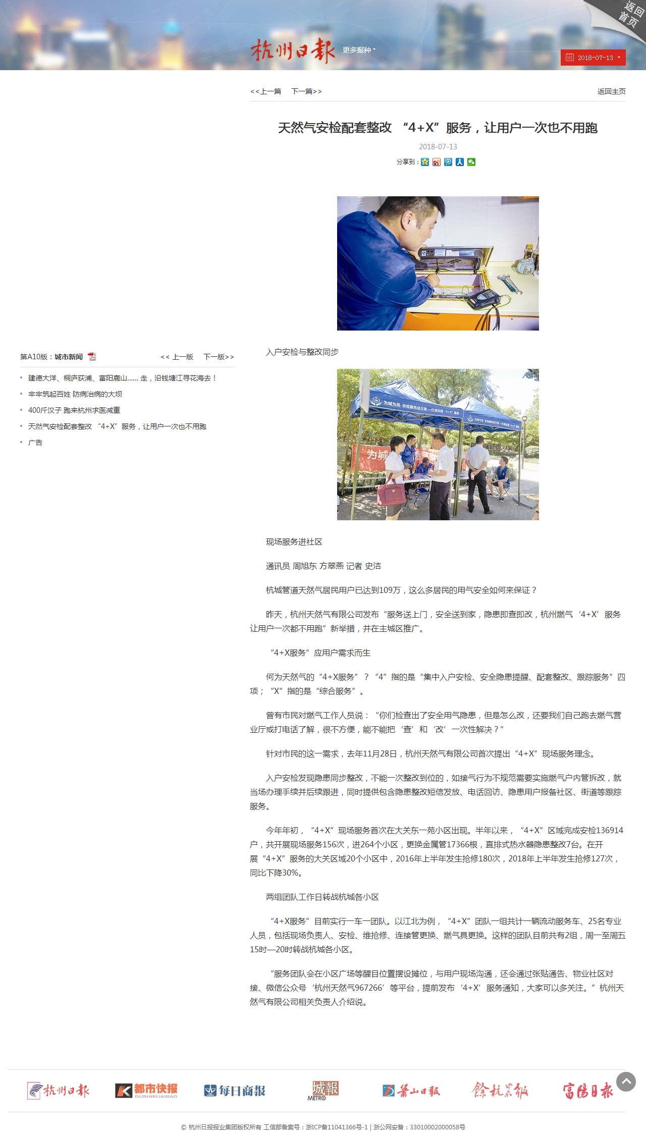 昨天,杭州天然氣有限公司發(fā)布“服務(wù)送上門,安全送到家,隱患即查即改,杭州燃?xì)狻?+X’服務(wù)讓用戶一次都不用跑”新舉措,并在主城區(qū)推廣。
