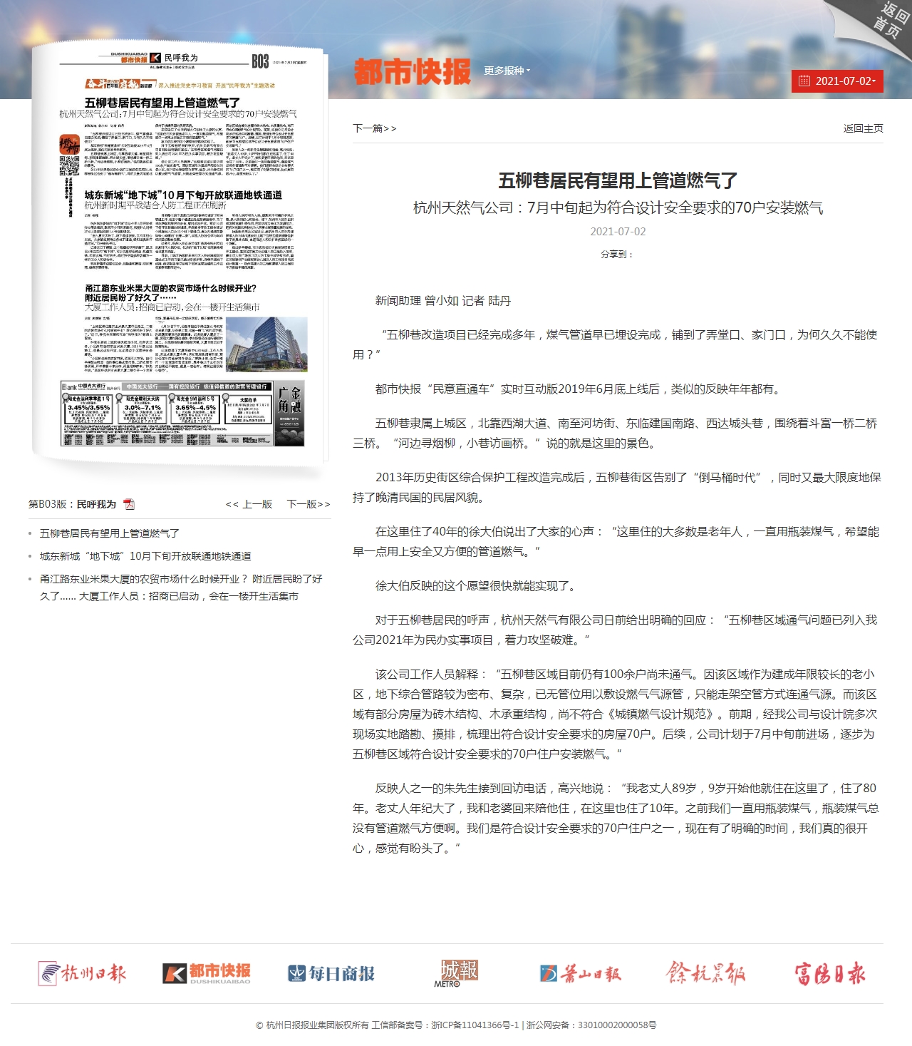 對(duì)于五柳巷居民的呼聲,杭州天然氣有限公司日前給出明確的回應(yīng):“五柳巷區(qū)域通氣問(wèn)題已列入我公司2021年為民辦實(shí)事項(xiàng)目,著力攻堅(jiān)破難。”