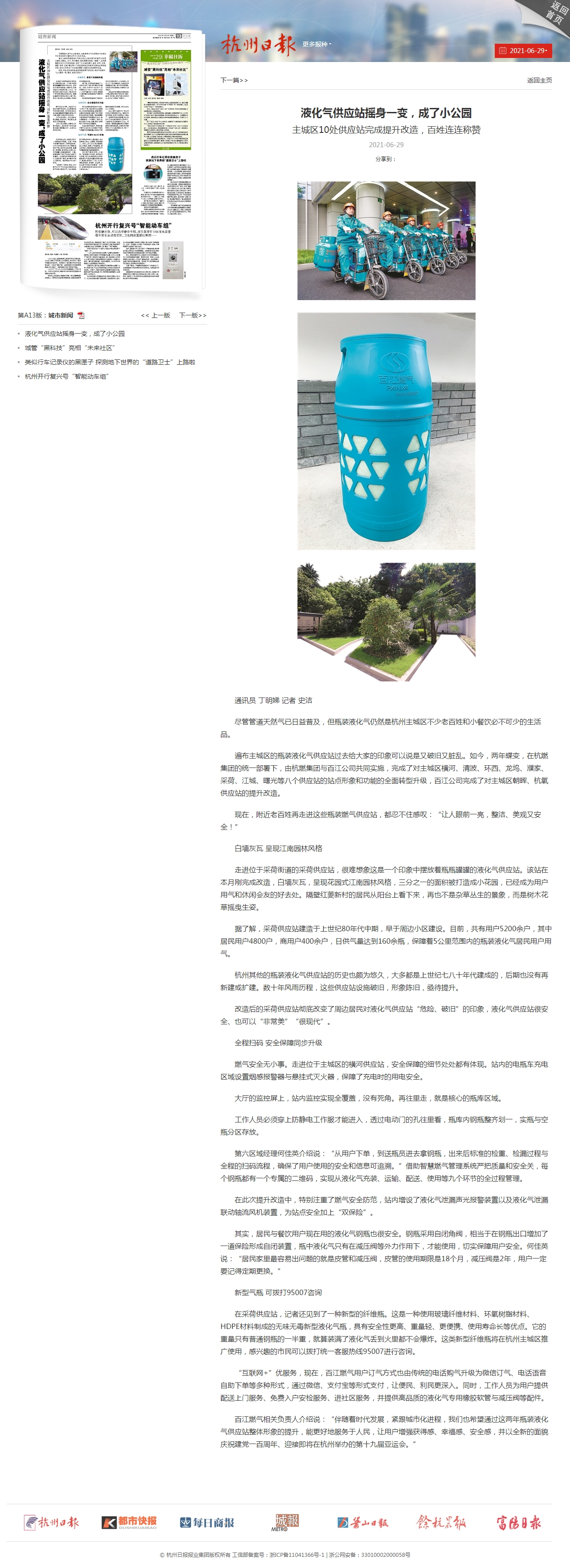 百江燃?xì)庀嚓P(guān)負(fù)責(zé)人介紹說:“伴隨著時(shí)代發(fā)展,緊跟城市化進(jìn)程,我們也希望通過這兩年瓶裝液化氣供應(yīng)站整體形象的提升,能更好地服務(wù)于人民,讓用戶增強(qiáng)獲得感、幸福感、安全感,并以全新的面貌慶祝建黨一百周年、迎接即將在杭州舉辦的第十九屆亞運(yùn)會(huì)。”