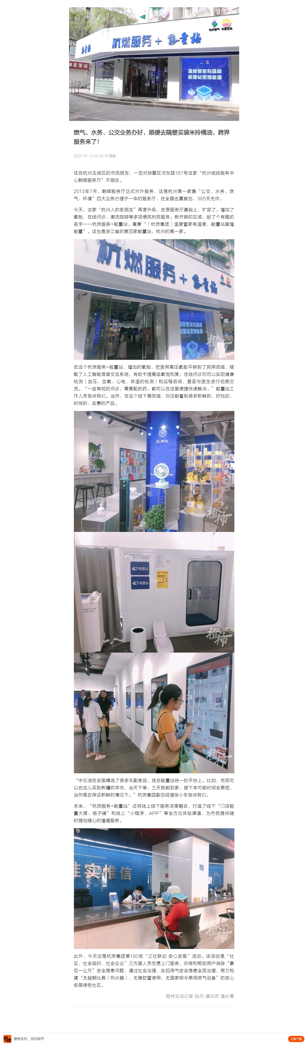 未來,“杭燃服務(wù)+能量站”還將線上線下服務(wù)深度融合,打造了線下“門店能量大屏、格子鋪”和線上“小程序、APP”等全方位體驗(yàn)渠道,為市民提供隨時(shí)隨地隨心的增值服務(wù)。