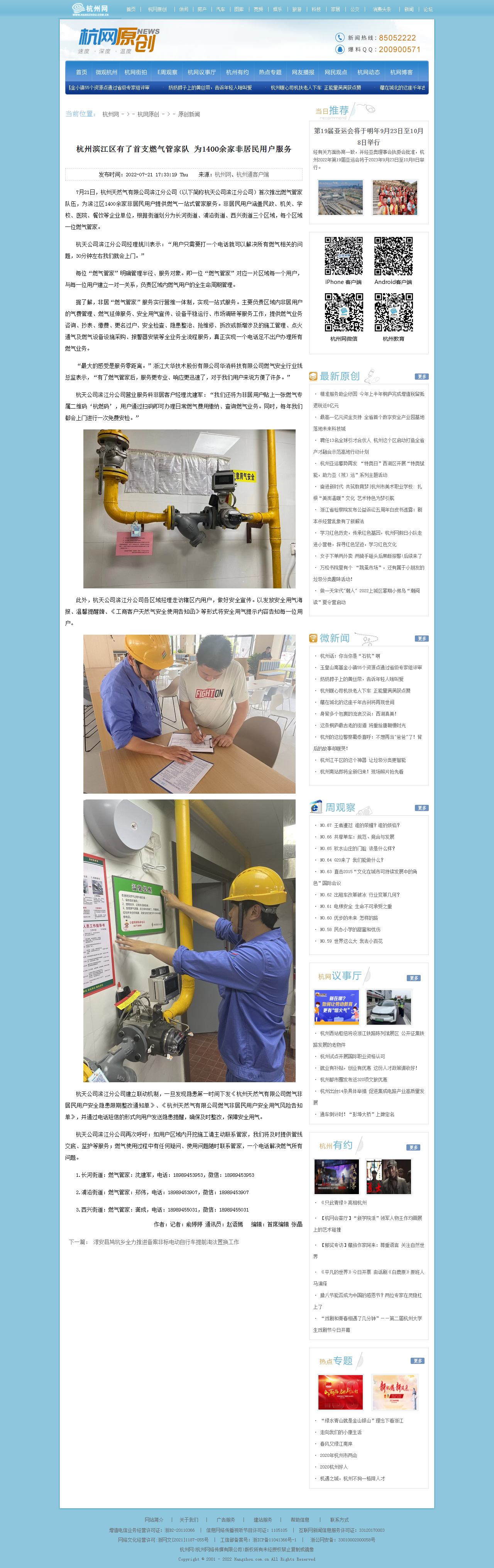 7月21日,杭州天然氣有限公司濱江分公司(以下簡稱杭天公司濱江分公司)首次推出燃?xì)夤芗谊犖椋瑸闉I江區(qū)1400余家非居民用戶提供燃?xì)庖徽臼焦芗曳⻊?wù)。非居民用戶涵蓋民政、機(jī)關(guān)、學(xué)校、醫(yī)院、餐飲等企業(yè)單位,根據(jù)街道劃分為長河街道、浦沿街道、西興街道三個區(qū)域,每個區(qū)域一位燃?xì)夤芗摇?/P>