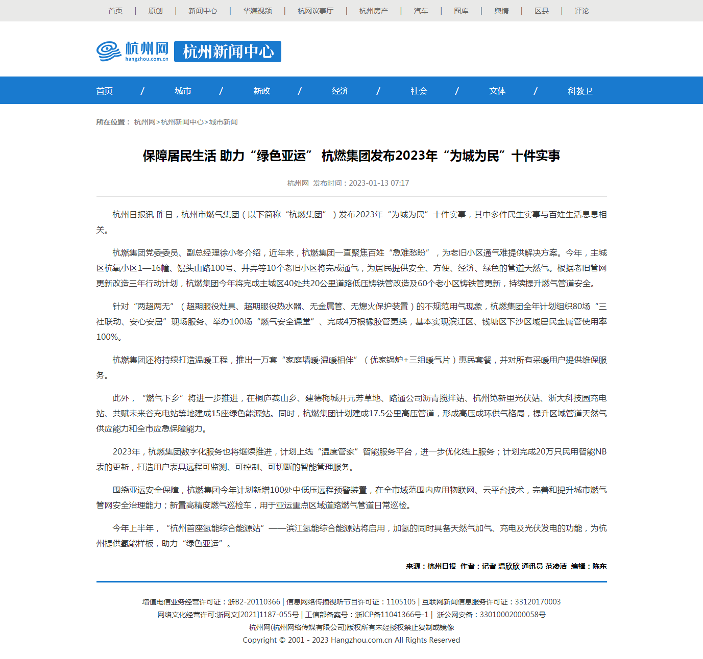 杭州日?qǐng)?bào)訊 昨日,杭州市燃?xì)饧瘓F(tuán)(以下簡(jiǎn)稱(chēng)“杭燃集團(tuán)”)發(fā)布2023年“為城為民”十件實(shí)事,其中多件民生實(shí)事與百姓生活息息相關(guān)。