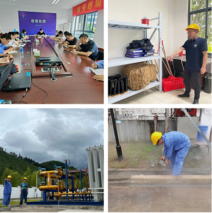 為保障天然氣管網(wǎng)安全平穩(wěn)運(yùn)行,根據(jù)往年防汛抗臺(tái)豐富經(jīng)驗(yàn),公司領(lǐng)導(dǎo)班子分組帶隊(duì)進(jìn)行安全檢查指導(dǎo)。場(chǎng)站班組對(duì)場(chǎng)站全面開(kāi)展站場(chǎng)排水、排澇系統(tǒng)檢查,開(kāi)展配電房、室外配電箱等重要設(shè)備隱患排查等各項(xiàng)工作,確保人員24小時(shí)待命,保證一旦發(fā)生突發(fā)事件能迅速配合開(kāi)展應(yīng)急搶險(xiǎn)。在集團(tuán)公司和城市能源公司的大力支持下,公司各場(chǎng)站LNG槽車次日到站的計(jì)劃均提前一天到場(chǎng)待命卸液。巡檢搶修加力度,巡檢班員工對(duì)山峰村過(guò)劉家溪橋管、溪邊路過(guò)壽昌江橋管、梅城鎮(zhèn)嚴(yán)州大橋橋管等多處河道橋管以及山體進(jìn)行巡查,排查統(tǒng)計(jì)重點(diǎn)部位和有歷史遺留問(wèn)題部位,把存在的隱患問(wèn)題消除臺(tái)風(fēng)來(lái)臨之前,同時(shí),對(duì)戶外燃?xì)庠O(shè)施進(jìn)行汛前安全巡檢,重點(diǎn)檢查各個(gè)調(diào)壓器的運(yùn)行情況及調(diào)壓器周邊樹(shù)木情況,防止臺(tái)風(fēng)吹倒樹(shù)木損壞調(diào)壓器。