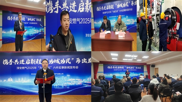 淳安公司支部書記、董事長丁立飛作新聞發(fā)布,宣布2025年“為城為民”六件實事。今年,淳安縣住房和城鄉(xiāng)建設(shè)局機關(guān)黨支部與淳安杭燃黨支部首次黨建聯(lián)建,攜手推出六件實事,圍繞“為城為民”服務(wù)宗旨,深化政企合作:聯(lián)合開展安全檢查和服務(wù),推進膠管“清零”;改造老舊小區(qū),消除安全隱患;持續(xù)落實非居民用戶同城同價,減輕用戶用氣成本;對小區(qū)低壓管網(wǎng)開展精細化“體檢”,運用科技手段保障老舊小區(qū)管網(wǎng)安全;完善文昌鎮(zhèn)、汾口鎮(zhèn)管網(wǎng)成環(huán)成網(wǎng),推動鄉(xiāng)鎮(zhèn)燃氣服務(wù)均等化;創(chuàng)新推出小公建優(yōu)惠套餐,釋放管道燃氣紅利。這些舉措助力淳安縣山海協(xié)作和共同富裕,讓群眾共享發(fā)展成果。