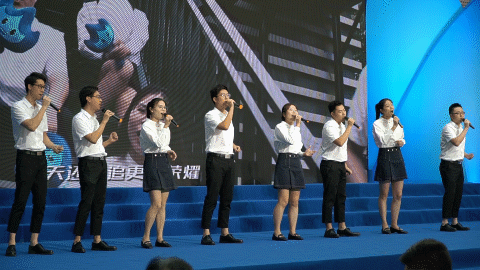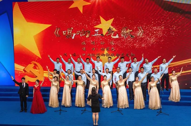 杭天公司男聲大合唱《走向復(fù)興》。燃燒杭燃人的赤誠初心,走上復(fù)興中華的道路,將大會的氣氛推向高潮。